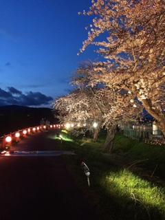 川沿いに続く道にライトアップされた桜がとても綺麗でした。