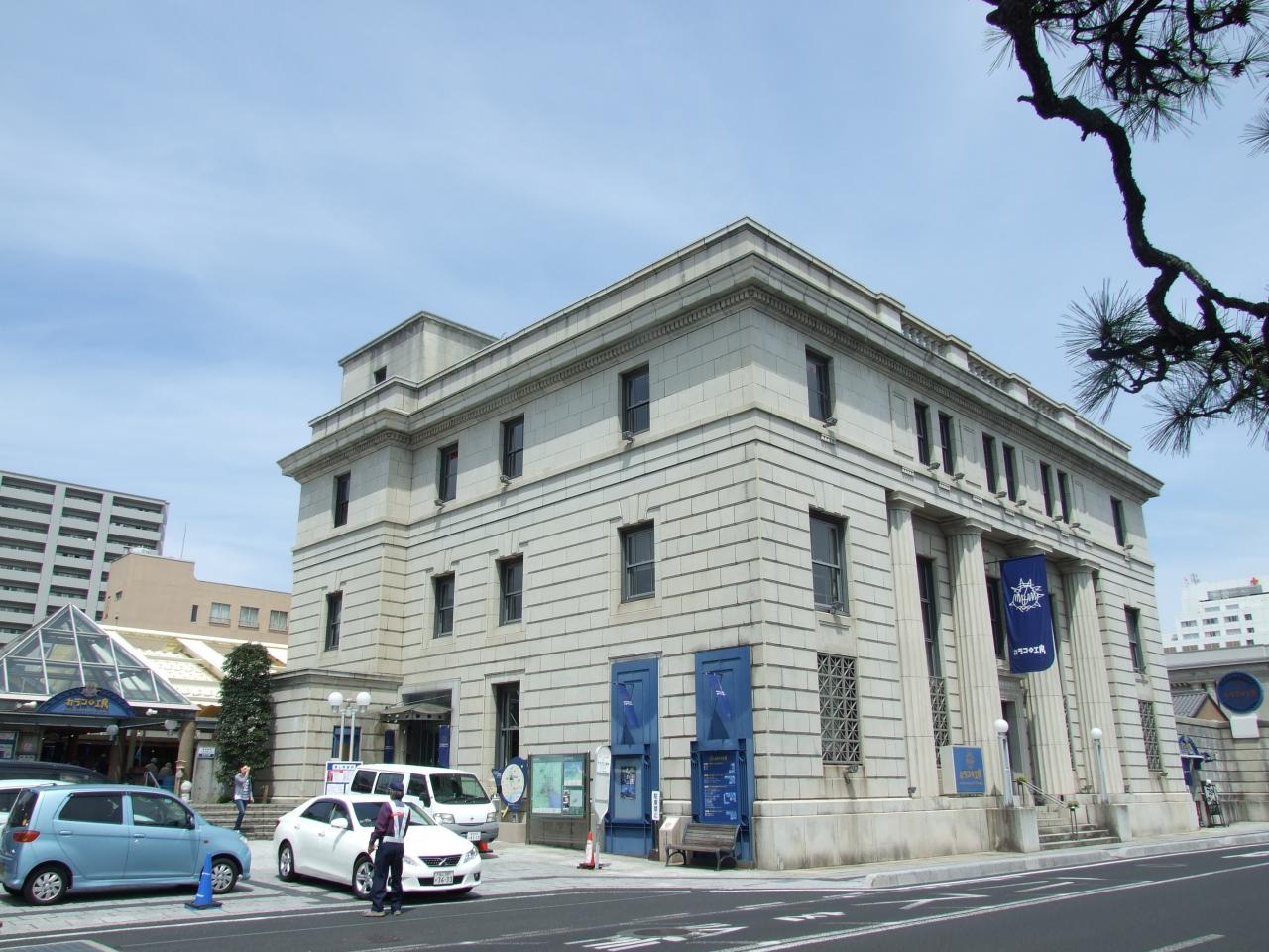 旧日本銀行松江支店です。中で松江名物の和菓子作りなどの体験ができます。ミニコンサートやイベントの会場としても使われています。
