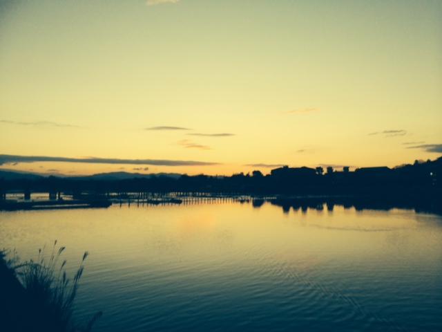 寒い冬の日の出に映える渡月橋は美しい!!