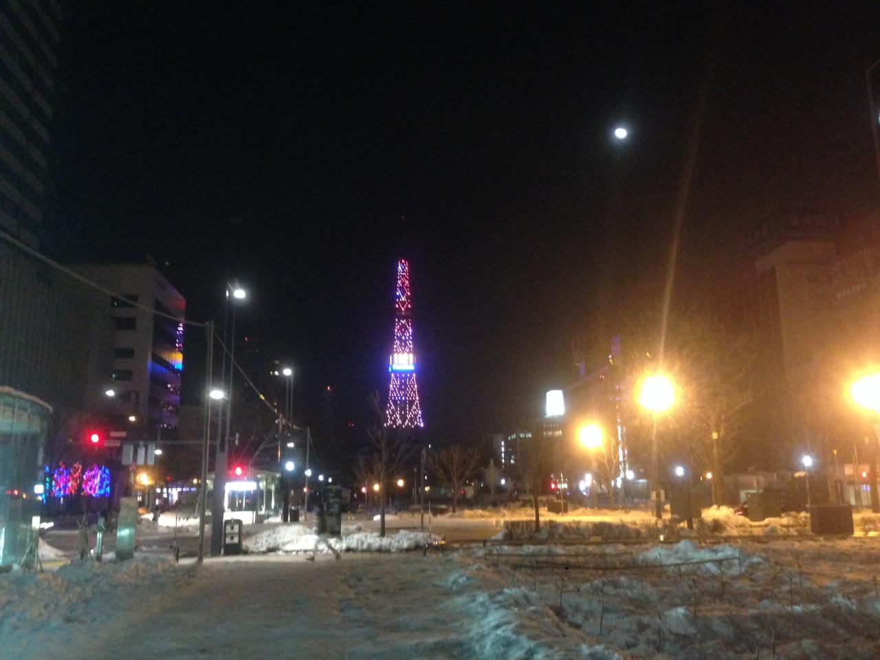 12月に大通公園で撮影しました。夜遅かったので人影が少なく、綺麗なイルミネーションを独り占めしているかのような気分でした。