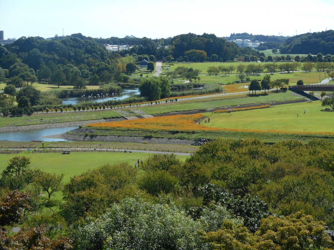 水戸偕楽園から見た街の風景で、風光明媚な光景が広がっていますお。