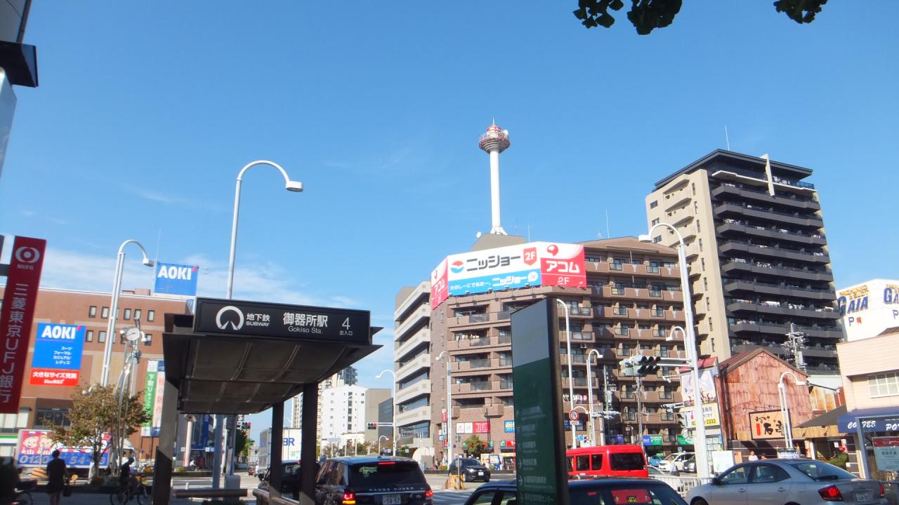 塔のある建物が昭和区役所で、地下鉄御器所駅に直結しています。この交差点にはスタバ(南西角)とイートインスペース完備のファミマ(北西角)があるので、待ち合わせや時間潰しに最適です。2店とも2階建てです。